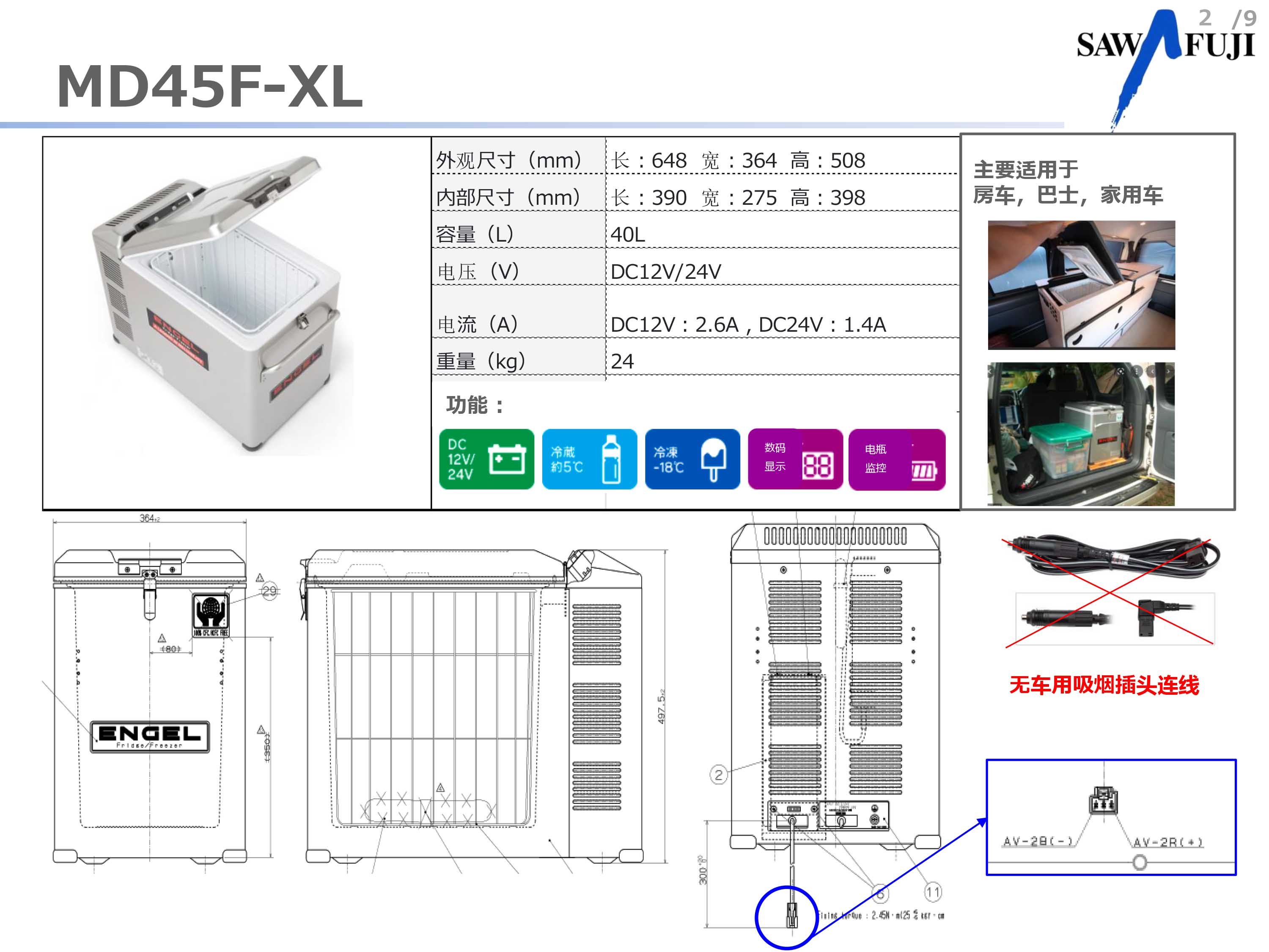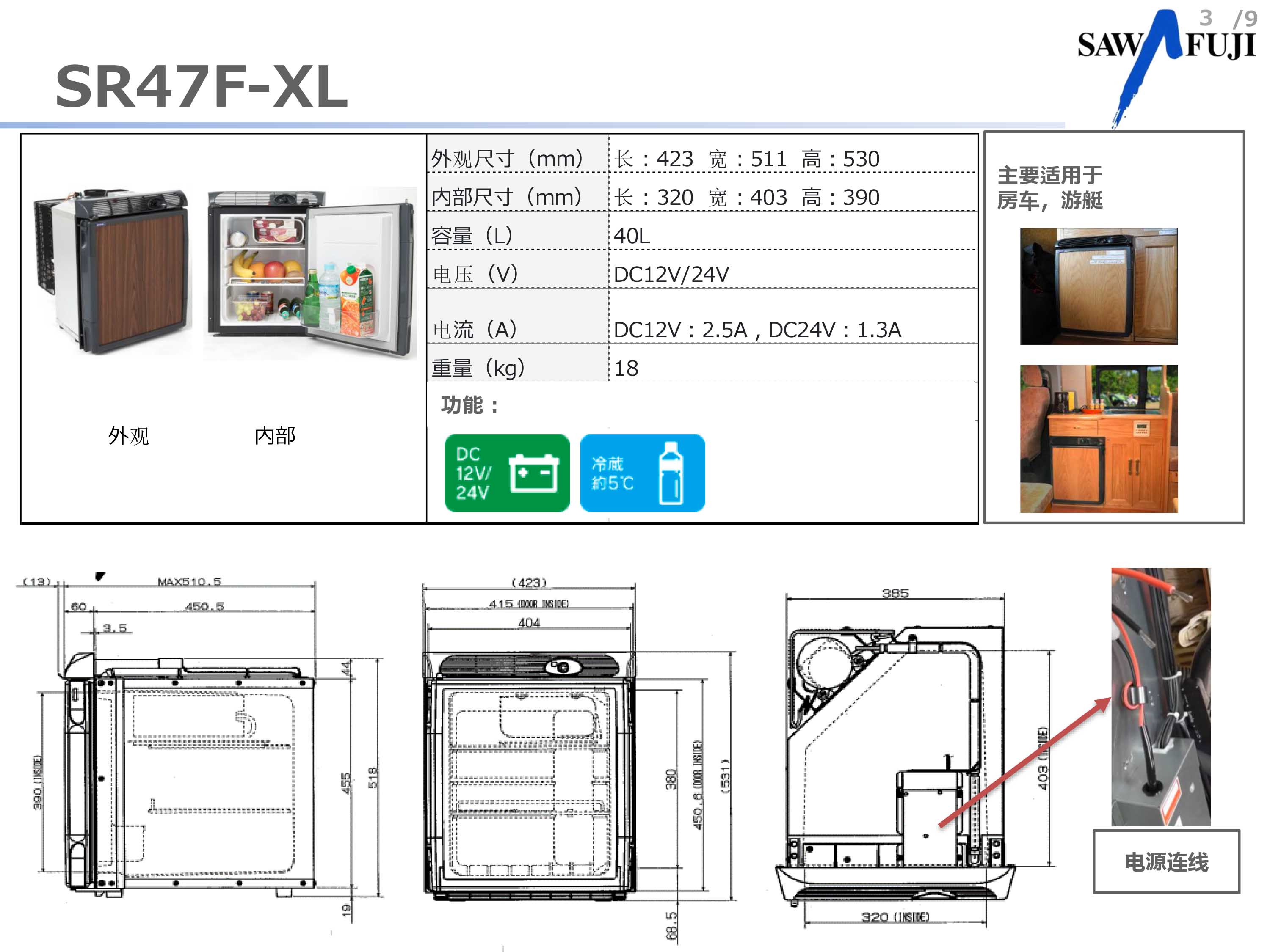 日本澤藤本田發(fā)電機多年推出的車載 冰箱現(xiàn)在中國上市,使用12V或24V車用電源,非常方便,產(chǎn)品可在私家車,長途車輛,商務(wù)車,游艇等上。